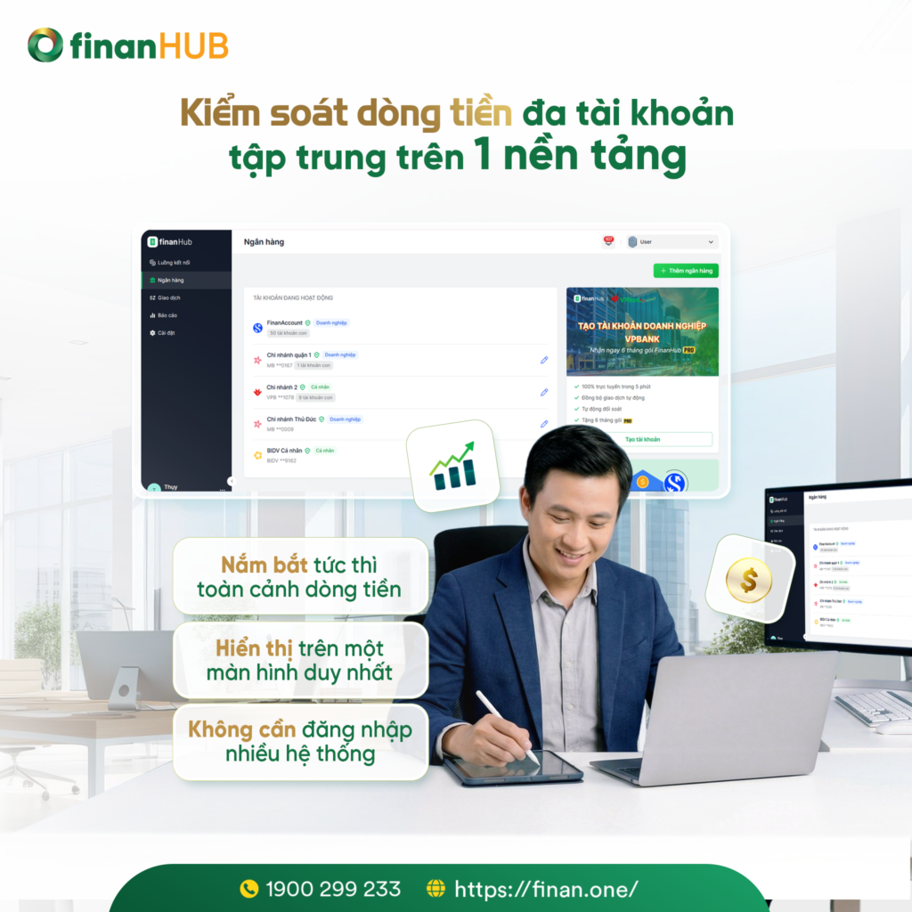 Sự ra mắt của finanHUB không chỉ giải quyết những thách thức trong quản lý tài chính mà còn mở ra một cách tiếp cận mới – nơi mọi dữ liệu được tập trung, minh bạch và luôn trong tầm kiểm soát. Giải pháp quản lý nguồn tiền tập trung finanHUB chính là lời giải cho bài toán quản lý dòng tiền hiện đại, giúp doanh nghiệp SME vận hành hiệu quả hơn và tự tin tăng trưởng trong dài hạn.