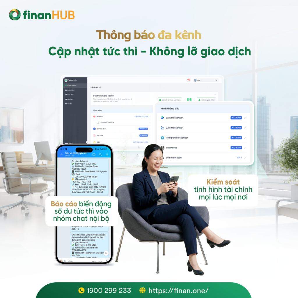 finanHUB – Giải pháp quản lý tập trung đa tài khoản ngân hàng & Thông báo đa kênh