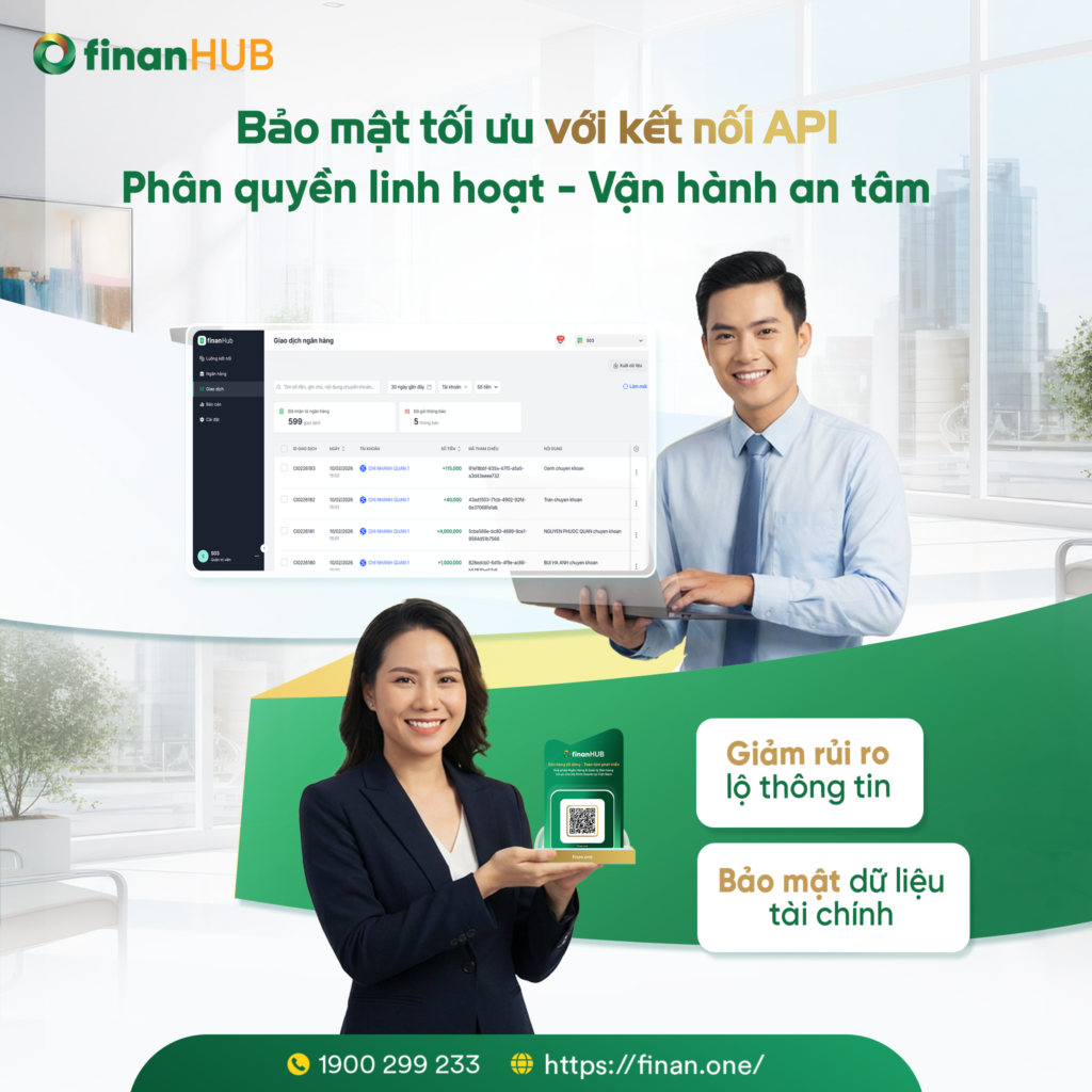 finanHUB kết nối trực tiếp với ngân hàng thông qua API, giúp doanh nghiệp không cần chia sẻ thông tin đăng nhập iBanking cho nhân viên hoặc bên thứ ba. Điều này đảm bảo an toàn tuyệt đối cho dữ liệu tài chính, đồng thời vẫn cho phép phân quyền linh hoạt để phục vụ nhu cầu vận hành. Doanh nghiệp có thể yên tâm kiểm soát dòng tiền mà không phải đánh đổi yếu tố bảo mật.